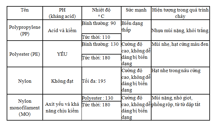 - Vải lọc: nylon, polypropylene, polyethylene, polyester và các loại tương tự.